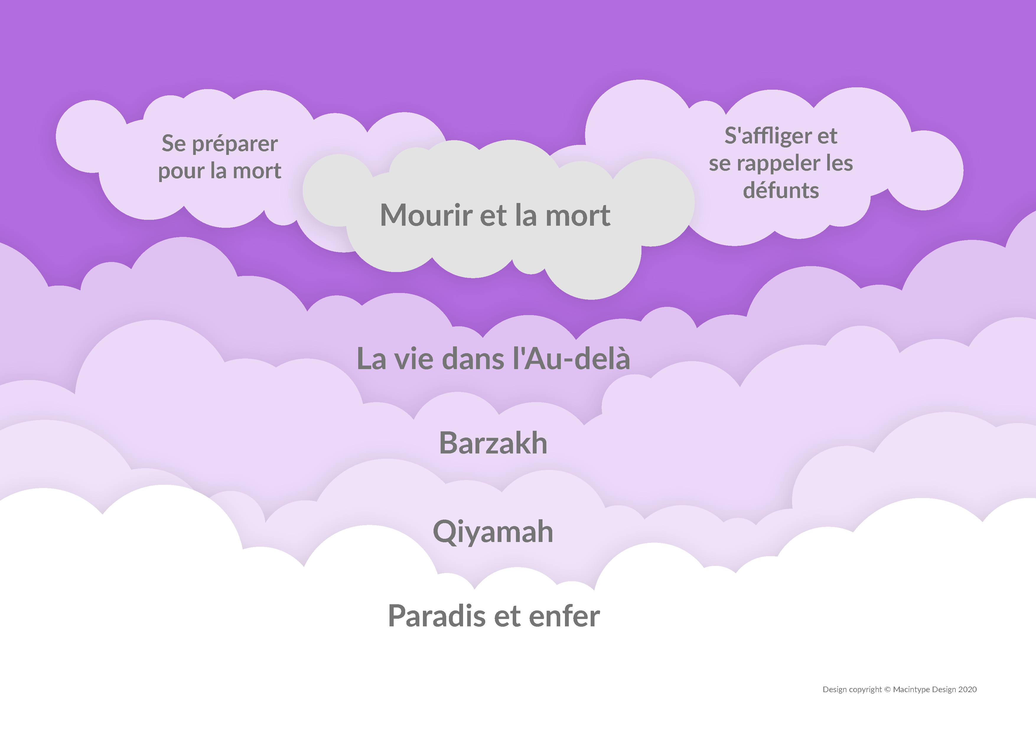 Ce module complète le cycle qui avait commencé avec la création d’Allah et qui se termine avec le retour à Lui. Il traite du processus de la mort, du monde intermédiaire qu’est le barzakh, de la résurrection à la fin des temps, du compte-rendu des actes le Jour du Jugement et des conséquences des actes de l’homme avec le Paradis comme récompense ou l’enfer comme châtiment.